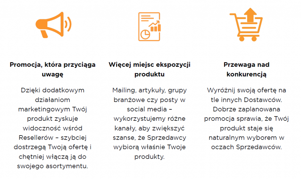 Wtedy właśnie sprawdza się wsparcie zespołu, który przejmuje ten ciężar i prowadzi działania promocyjne w sposób ciągły. Dzięki temu Dostawca może skupić się na produkcie, a komunikacja do Resellerów działa w tle, bez przerw i opóźnień. To naturalny sposób na przyspieszenie procesu zdobywania Sprzedawców.