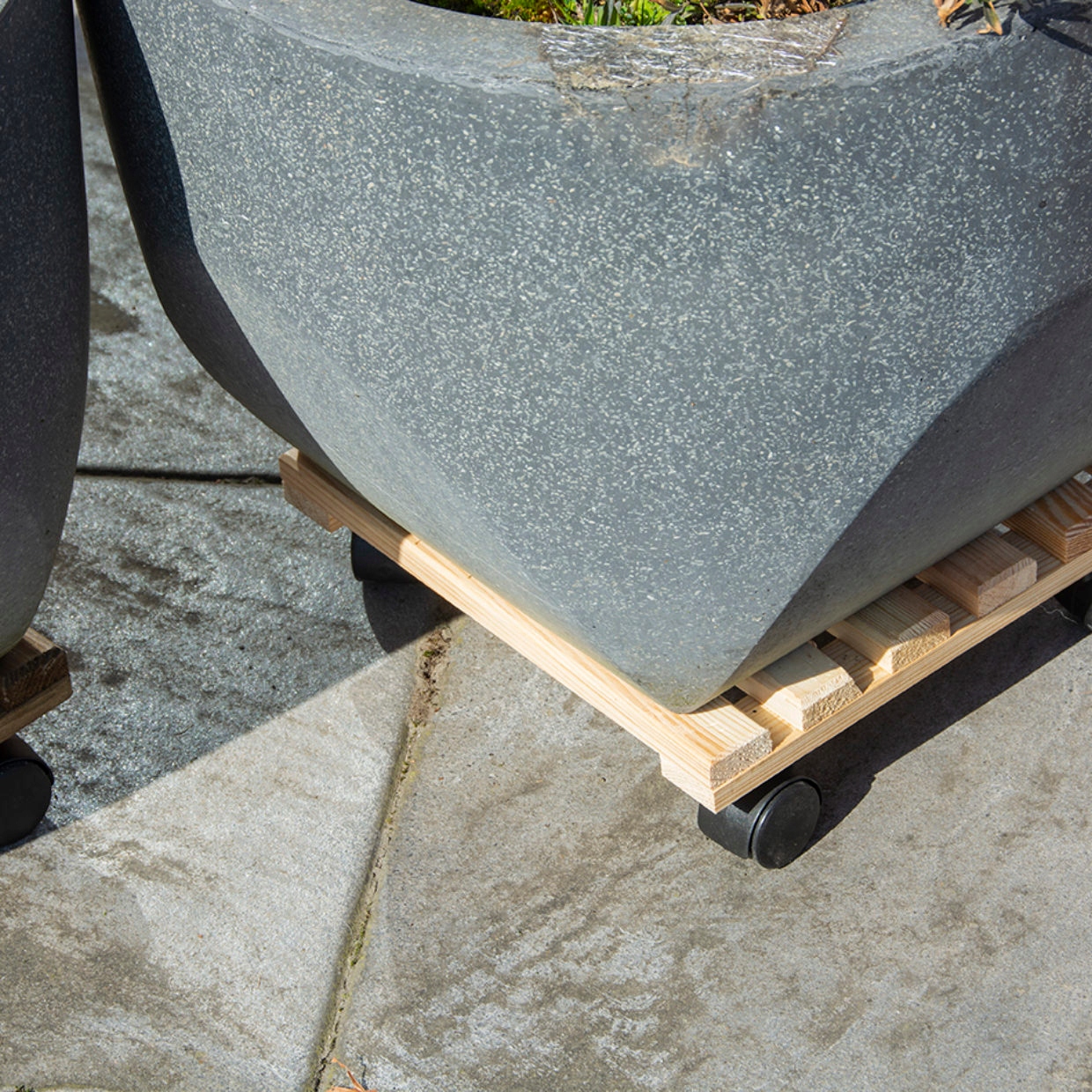 Podstawka kwadratowa pod doniczkę lub stojak na kwiaty wyposażony w 4 kółka, wykonany z naturalnego drewna sosnowego z certyfikatem FSC. Praktyczny wózek do użytku w pomieszczeniach jak i na tarasie lub ogrodzie.