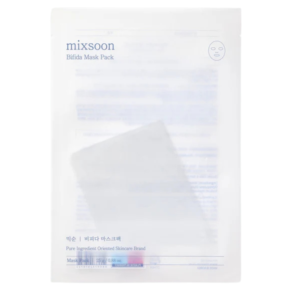 MIXSOON Bifida Mask Pack to nawilżająca maseczka w płachcie, stworzona z myślą o regeneracji i wzmocnieniu bariery ochronnej skóry. Zawiera ferment Bifida oraz ferment Lactobacillus, które wspomagają odbudowę mikrobiomu skóry, wygładzają i przywracają skórze zdrowy, promienny wygląd. Lekka, żelowa esencja zapewnia intensywne nawilżenie i komfort podczas aplikacji.