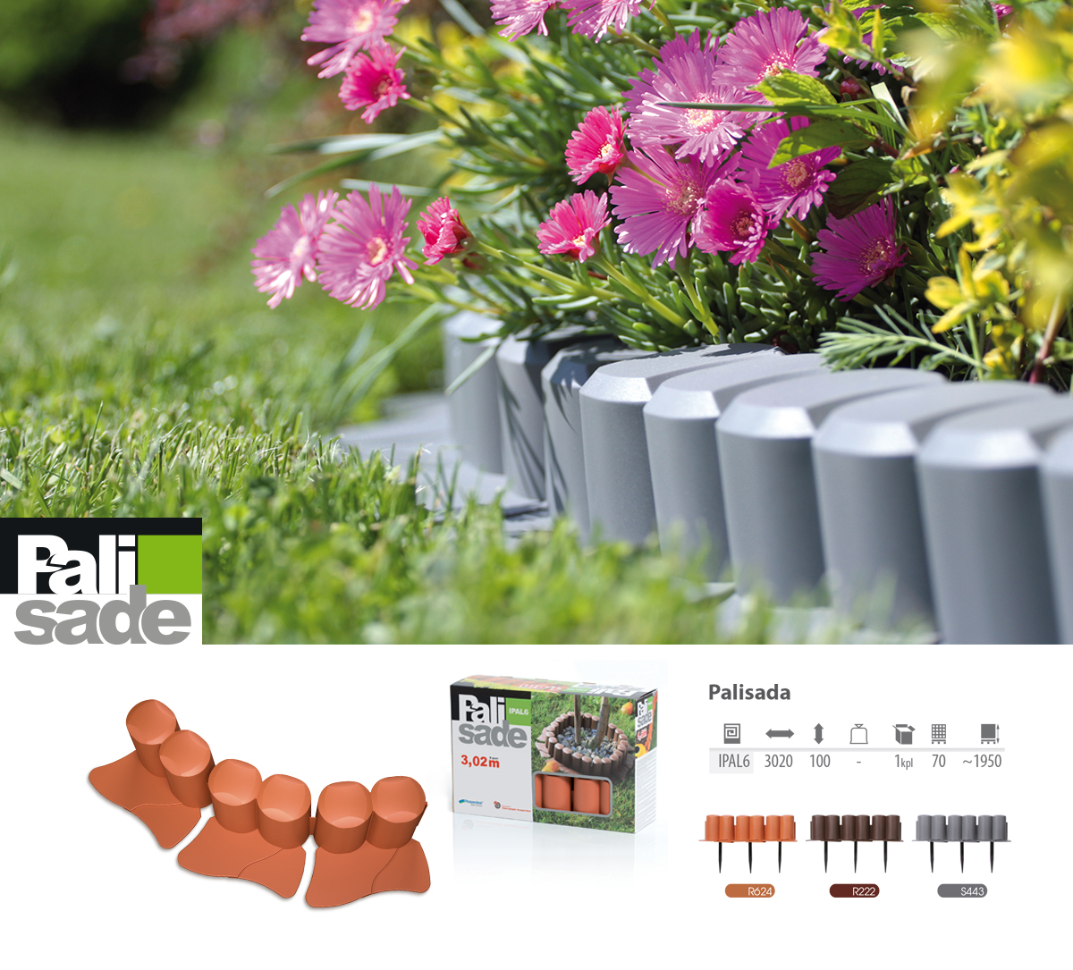 IPAL6 daję swobodę w aranżowaniu przestrzeni, doskonale sprawdza się przy oddzielaniu rabat od ścieżek. Palisada posiada system łączenia modułów. Prosty system montażu pozwala na samodzielne ułożenie krawężnika, uzyskując w krótkim czasie 3,2 metra obrzeża pełnego uroku.