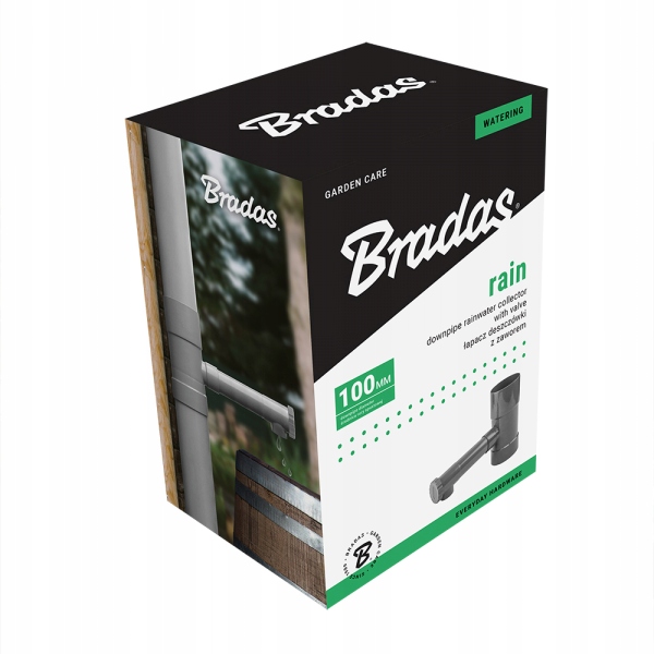 Zbieracz, łapacz wody deszczowej z zaworem, BRADAS 80mm, Antracyt