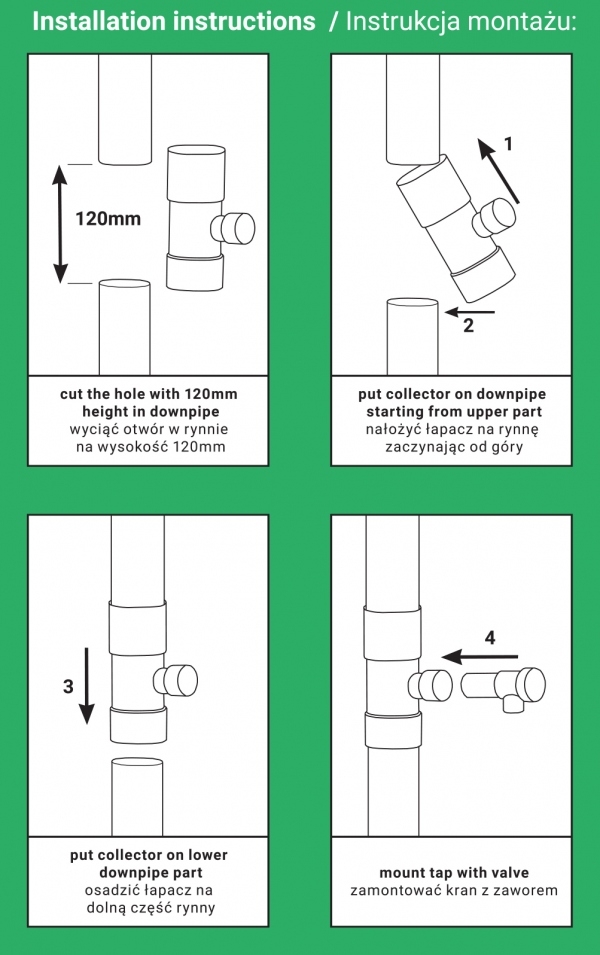 – zbieracz można zastosować do rur spustowych PCV i metalowych o średnicy : 80 mm