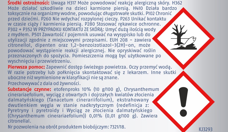 Koncentrat do rozcieńczania z wodą przeznaczony do zwalczania komarów, meszek, kleszczy i much.