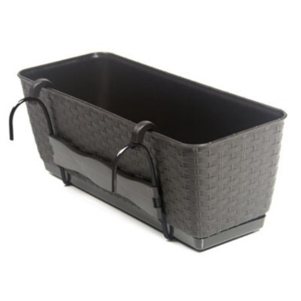 Podłużna doniczka balkonowa z podstawką  RATOLLA PW o fakturze wiernie imitującej plecionkę z naturalnego rattanu. Pozwala kreować piękne unikatowe wnętrza i bez ograniczeń aranżować przestrzeń wokół domu. Dzięki klasycznej, czystej formie nadaje się do wszystkich pomieszczeń, godząc różne style i upodobania. Jej funkcjonalność wyraża się przede wszystkim w komforcie użytkowania bez względu na aurę.  Doniczka posiada  w zestawie wkład umożliwiający prawidłowe nawadnianie roślin oraz haki i zabezpieczenia do montażu na balustradach.