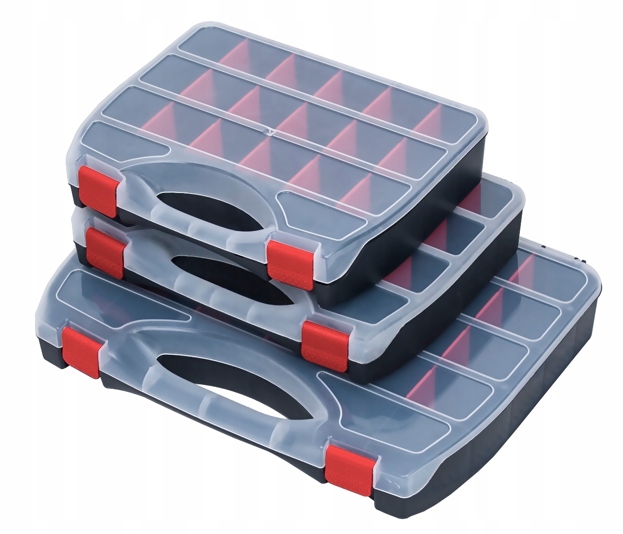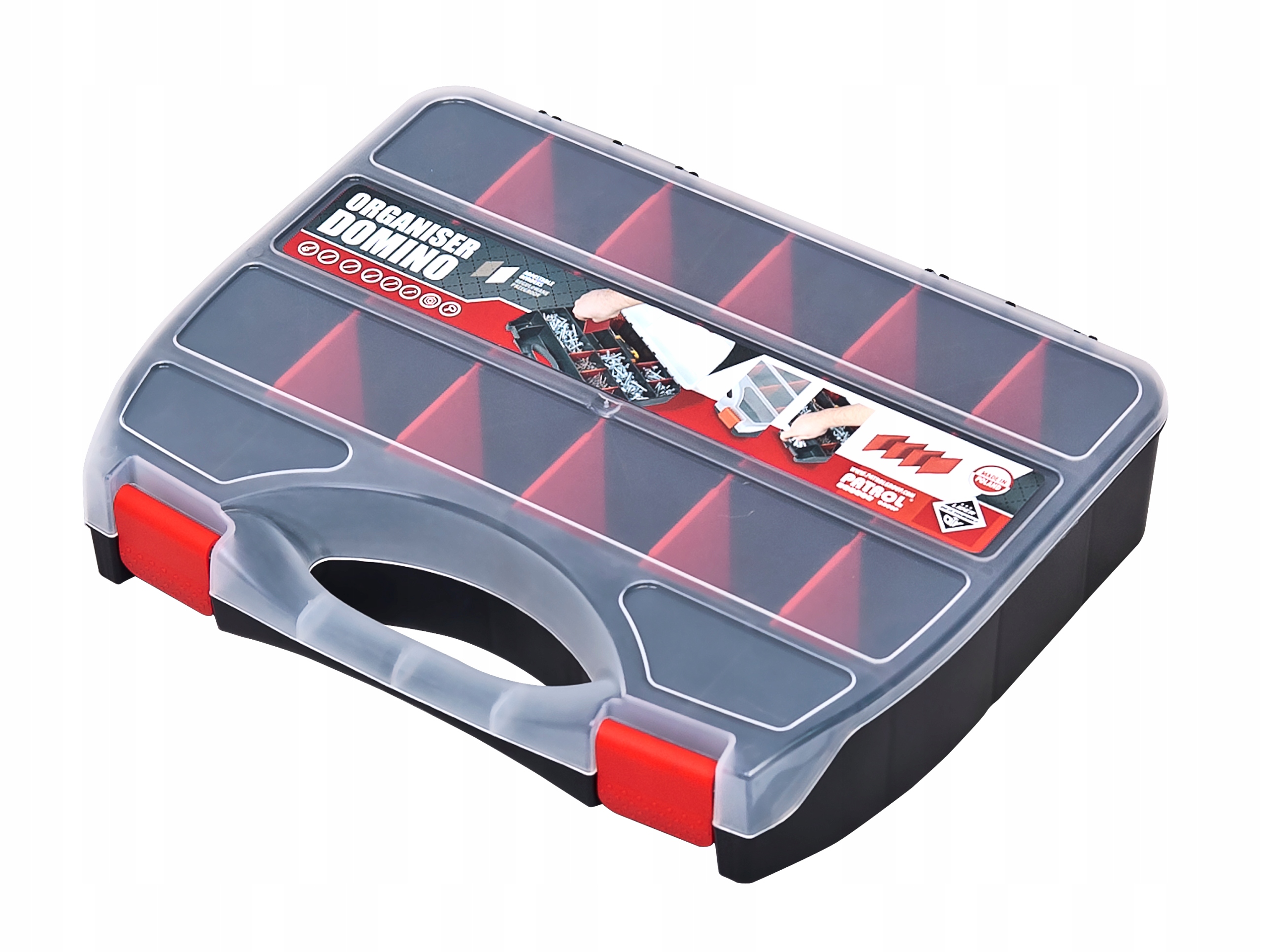Organizer jest idealnym narzędziem, dzięki któremu jasno i przejrzyście posortujesz drobne oraz większe elementy zarówno w pracy, garażu jak i w domu.Organizer składa się z 18 komór. Możliwość regulacji komór pozwoli na dostosowanie ich do Twoich potrzeb.Sortownik posiada dwa zapięcia, ergonomiczny uchwyt oraz przeźroczystą pokrywę, dzięki której zawsze wszystko będzie doskonale widoczne i łatwo dostępne.Polecany tam gdzie jest wymagany porządek i przejrzystość asortymentu.